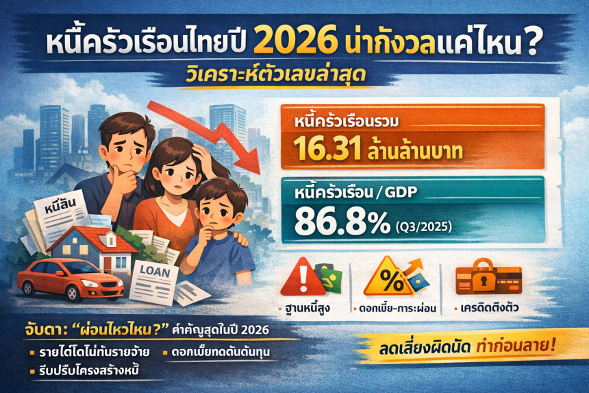 หมายเหตุเรื่องคำว่า “ล่าสุด”: ในช่วงต้นปี 2026 หน่วยงานมักรายงานตัวเลขหนี้ครัวเรือนแบบ “ล่าช้าตามรอบสถิติ” ดังนั้นบทความนี้ยึดตัวเลขที่เผยแพร่ล่าสุดในทางการ ณ เวลานี้ (Q3/2025) เป็นฐานวิเคราะห์แนวโน้มปี 2026